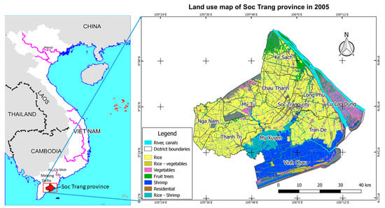 Case study in Soc Trang Province with a land-use map from 2005. (Source: DONRE of Soc Trang, 2005 [37]).