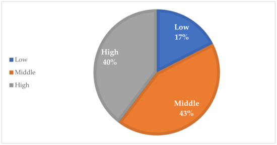 Out of 126 valid questionnaire responders, 22 chose the low story level, 54 chose the middle story level, and 50 opted for the high story level (Figure 3). The respondents who preferred middle and high story levels are almost equal (43% and 40%), and both outperformed those who voted for the low story level (17%). Thirty-one respondents explained their choice. Four wrote living convenience and one, acrophobia, for the low story level, in which elevator waiting time is reduced and for emergency circumstances (e.g., when they may be forced to use the stairs). Eleven indicated their reasons for choosing the middle story level, which can be categorized as the Doctrine of the Mean (Zhong Yong in Mandarin) and a broad field of vision. The former, which originated from Confucianism, aims to reach harmony both physically and mentally. Living in the middle, according to six respondents, signals a balance between living convenience, air quality, noise, and vision. Another five chose this level for the relatively good view and a broad field of vision. Fifteen chose the high story level mainly for the following three reasons, a broad field of vision without blocks, good view, and extended daylight hours. From the responses, we conclude that most respondents intend to live relatively distant from the ground.