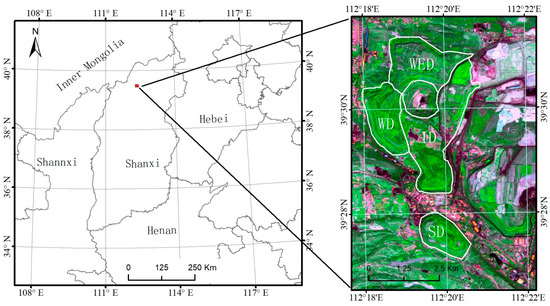 Coal has played a vital role in meeting China’s energy production demands. Coal has been critical for providing energy required for sustaining life and ensuring the production of good and services. In 2019, China industrial enterprises produced 3.75 billion tons of raw coal, an increase of 4.2% over the previous year [1]. While mineral resources provide the energy required for economic development, these also result in unprecedented severe environmental degradation, including air pollution, large-scale land disturbance, and damage to ecosystem resilience and sustainability [2,3]. To compensate for the ecological damage caused by mining activities, it is often accompanied by reclamation in the long-term mining process [4]. One of the most important steps in reclamation is vegetation restoration. By using effective monitoring techniques within mining areas, vegetation conditions can be reclaimed by enhancing restoration planning and implementation [5,6]. Relying only on traditional ground sampling experiments to monitor vegetation condition requires tremendous manpower and financial resources, which is not realistic. Compared with traditional methods, remote sensing monitoring can accomplish large-scale vegetation monitoring and provide effective and timely vegetation information [6,7,8,9,10,11,12,13].