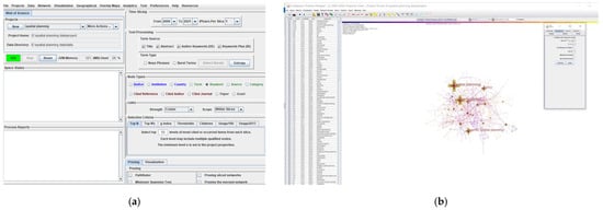 - Import the data of the database into CiteSpace (Figure 2a). Take the keyword knowledge map as an example and refer to Figure 3 for the specific operation process. The acquisition of each map can be adjusted according to the size of the data volume or other actual conditions.