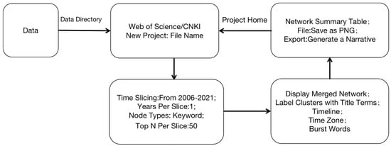 Due to its strong practicality, CiteSpace has been widely used by academic scholars in various fields in recent years, such as medicine, economics, ecology, and so on. Azam et al. used CiteSpace to make knowledge maps and bibliometric analysis about enhancing mechanical energy harvesting based on the WOS Core Collection (WOSCC) from 2000 to 2020 [24]. Carve et al. made bibliometric maps for the trends in environmental and toxicity research on organic ultraviolet filters by the literature published from 2000 to 2020 based on WOSCC [25]. Ghisi et al. also obtained data from WOSCC between 1975 and 2019 and with the help of CiteSpace reviewed glyphosate and its toxicology [26]. CiteSpace is used for the knowledge structure and research progress in wind power generation from 2005 to 2020 by Azam et al. [27]. With the help of CiteSpace, Daim et al. made a clusters timeline of patent citations of IoT, cybersecurity, and blockchain to forecast technological positioning [28]. Pestana et al. made network science by CiteSpace in determining the intellectual structure, emerging trends, and future research opportunities about senior tourism research, and the data was from Scopus and WOS [29]. Yılmaz et al. conducted scientometric analysis of the life circle assessments in the construction industry by CiteSpace based on WOS from 1997 to 2021 [30]. Obringer et al. used CiteSpace to synthesize the recent literature on smart cities and climate change and discuss the benefits of smart cities in terms of future climate change mitigation and adaptation [31]. A thorough review of a virtual power plant from the perspective of urban sustainability was conducted based on WOS and Scopus between 2000 and 2020, which helped to understand the progress, development, and hot points in the previous research [32]. Carollo et al. used CiteSpace to make a systematic review of the developmental disabilities across the world from 1936 to 2020 based on the Scopus platform [33]. Both VOSviewer and CiteSpace were used by Picone et al. to explore the development of scientific research on marine protected areas, with both Scopus and WOS as the data sources, and the time covers 1993–2020 [34]. Morar et al. made a knowledge domain visualization by CiteSpace to present the important contributions in the development and improvement of the heat integration techniques [35].