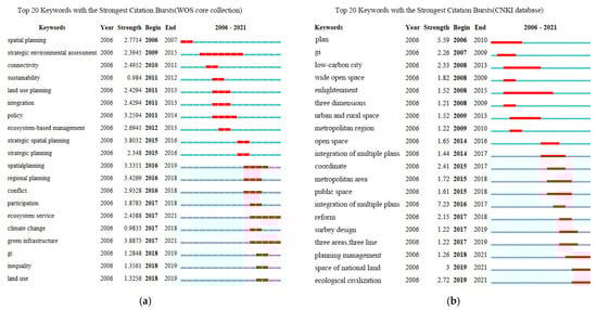Through visual analysis of literature published in the CNKI database from 2006 to 2021, several keyword clusters were formed, including studies on policy and management, such as spatial planning, underground space, special planning, space governance, integration of multiple planning, and ecological civilization (Figure 11).
