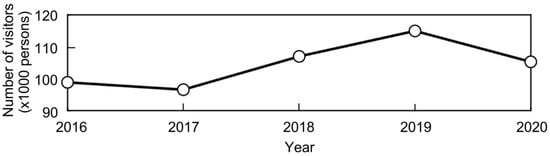 The estimated annual number of visitors to the mountains of Daisetsuzan National Park from 2016 to 2020 (Compiled from unpublished data provided by the Ministry of the Environment).