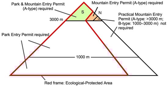 Application categories for entry permits to Yushan, Shei-Pa, and Taroko National Parks (prepared by the interviews with national park managers). S: ecological-protected area above 3000 m, N: scenic area above 3000 m.