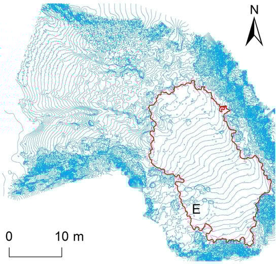 In general, it is considered better to set up campgrounds in flat areas to prevent soil erosion. However, it is not always considered a good idea in the recreation ecology field. For example, a study pointed out that campgrounds should be located in places without large flat areas to control impacts of camping (e.g., vegetation loss and bare ground expansion) within acceptable levels []. This is because campgrounds are more easily expanded spatially on a flat surface to increase the area of impact. In the Kuro-dake campsite, we found that the area had expanded from 346 m2 in 2012 to 394 m2 in 2017, mainly on the southwest side (E in Figure 12). This is true despite ropes being set up around the site [].