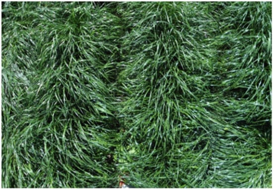 - Katova, A. New Perennial ryegrass variety (Lolium perenne L.) IFK Harmoniya. J. Mt. Agric. Balk. 2011, 14, 721–739. [Google Scholar]