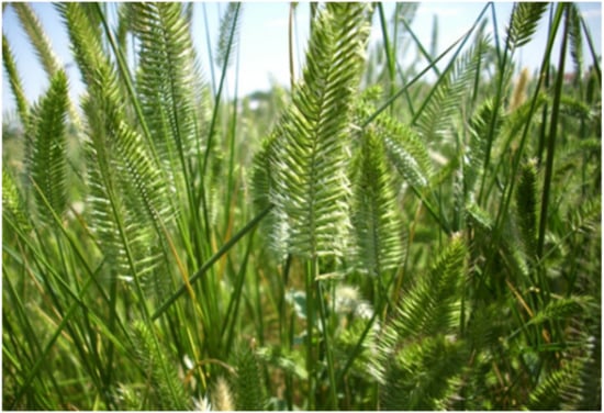 - Marinov-Serafimov, P.; Golubinova, I. The infl uence of some herbicides on seed production in standard wheatgrass (Agropyron desertorum (Fisch.) Schultes). Bulg. J. Agric. Sci. 2019, 25, 1191–1197. [Google Scholar]
