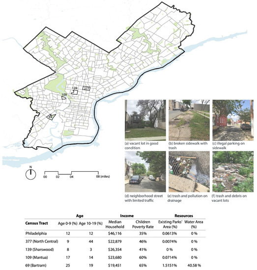 Census Tract 377 (Philadelphia, PA, USA) was chosen as the study area based on demographics, income, and natural resources conditions.