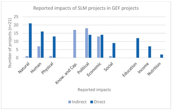 In terms of the impacts measured, as we might expect given the traditional focus of the GGW and GEF on ecological outcomes, all projects recorded changes to natural assets, with the greatest number of indicators referring to planted area or changes in forested area. Beyond this, many projects included indicators for human assets, especially trainings in SLM and other production practices, institutional knowledge and capacity, and other indirect and direct opportunities. Aside from education, which in most cases takes the form of specific capacity-building and training for SLM practices, very few projects recorded changes to other functionings. Thus, we found that the current evaluation frameworks only facilitate very limited insight on the well-being impacts of these projects.
