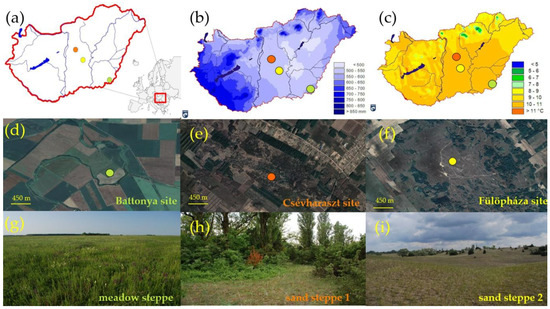 - Kovács-Láng, E.; Kröel-Dulay, G.; Kertész, M.; Fekete, G.; Bartha, S.; Mika, J.; Dobi-Wantuch, I.; Rédei, T.; Rajkai, K.; Hahn, I. Changes in the composition of sand grasslands along a climatic gradient in Hungary and implications for climate change. Phytocoenologia 2000, 30, 385–407. [Google Scholar] [CrossRef]