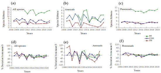 - Jonas, J.L.; Buhl, D.A.; Symstad, A.J. Impacts of weather on long-term patterns of plant richness and diversity vary with location and management. Ecology 2015, 96, 2417–2432. [Google Scholar] [CrossRef]