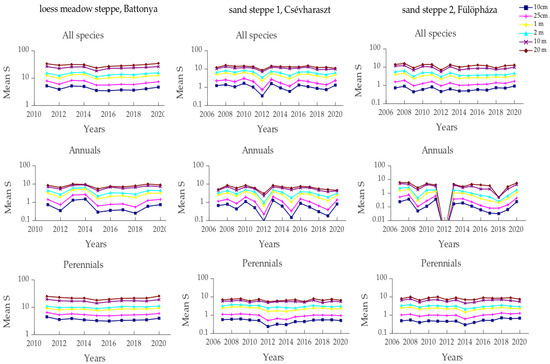 - Dengler, J.; Matthews, T.J.; Steinbauer, M.J.; Wolfrum, S.; Boch, S.; Chiarucci, A.; Conradi, T.; Dembicz, I.; Marcenò, C.; García-Mijangos, I.; et al. Species–area relationships in continuous vegetation: Evidence from Palaearctic grasslands. J. Biogeogr. 2020, 47, 72–86. [Google Scholar] [CrossRef]