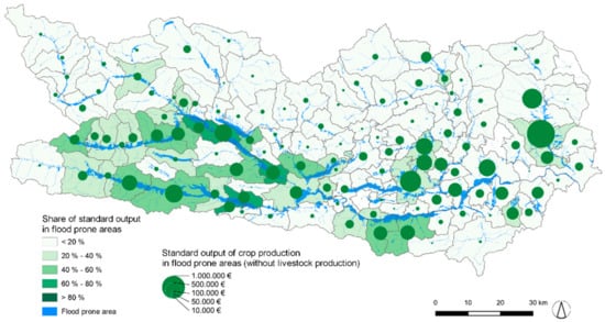 - How are flood-prone areas in Alpine regions currently used (focus on settlements and agriculture)? The regional analysis of settlements located in flood-prone areas shows that in pronounced mountain regions, a higher percentage of settlements is affected by flooding. Flood-prone areas are also needed for agricultural production; 7.7% of agricultural areas in Austria are located in flood-prone areas. Looking at valuable agricultural land, 12% is affected by flooding; however, the percentage is higher in Alpine regions. In Carinthia, for example, 21% of valuable agricultural land is located in flood-prone areas.