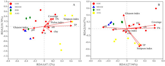 4.1. Degradation and Cultivation Significantly Changes the Biotic and Abiotic Components