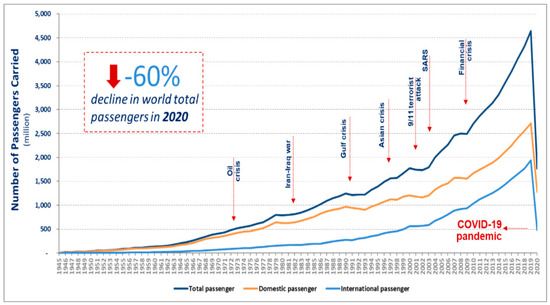 Figure 4. Global air passenger traffic trend, 1945–2020 (source: International Civil Aviation Organization [53]).