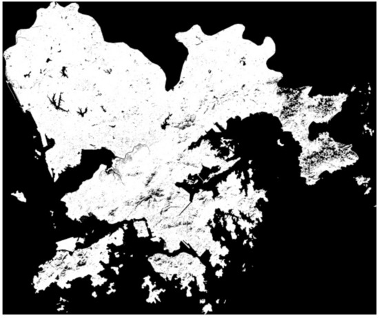 An example of the land area of Hong Kong and Shenzhen in 2016 after the water was masked.