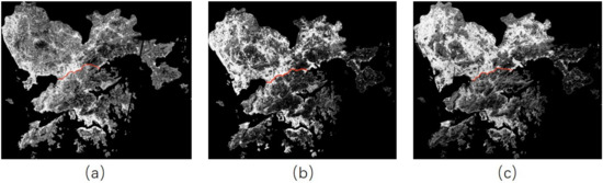 Many trees and shrubs have been planted in residential areas, as well as on the rooftops of some commercial buildings and residential buildings. These areas may be impervious surfaces; however, they could be mistakenly estimated as vegetation. The mistaken classification between low-albedo and vegetation might influence the amount of impervious surface area. Due to the hilly characteristic of Hong Kong, the enormous mountains generated shade over their surrounding areas, which were classified as low-albedo areas, which affects the estimation of the impervious surface fraction. Moreover, different sea levels at different times affected the total land area being recorded by remote sensors.