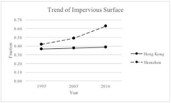 Trend of impervious surface for Hong Kong and Shenzhen.