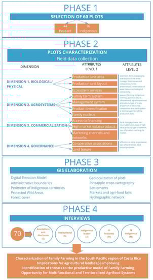 The methodological process of the research was developed in 4 phases. Phase 1: selection of the FF plots. Phase 2: related to the characterization of the FF plots. Phase 3: on the preparation of the analysis cartographic bases. Phase 4: of data collection through interviews (Figure 3).