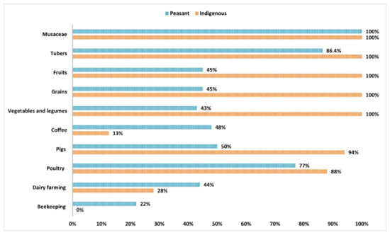 Product diversification in peasant and indigenous farms. Source: generated by the authors.