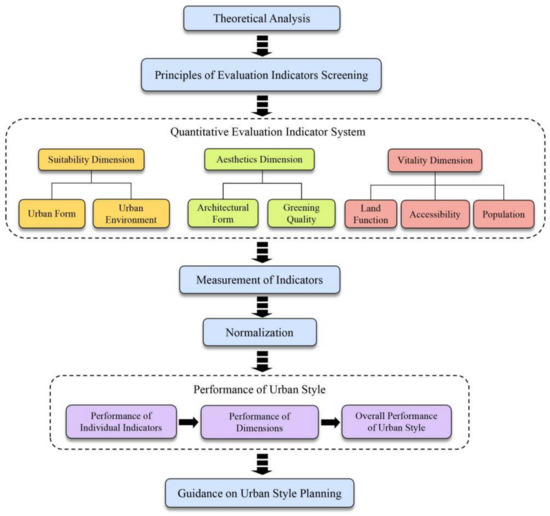 - Appropriate evaluation indicators. Giving the urban style evaluation framework a solid theoretical grounding implies that indicators should be selected to ensure that the theoretical features of the urban space are comprehensively covered.