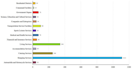 - Yue, Y.; Zhuang, Y.; Yeh, A.G.O.; Xie, J.Y.; Ma, C.L.; Li, Q.Q. Measurements of POI-based Mixed Use and Their Relationships with Neighbourhood Vibrancy. Int. J. Geogr. Inf. Sci. 2016, 31, 658–675. [Google Scholar] [CrossRef] [Green Version]