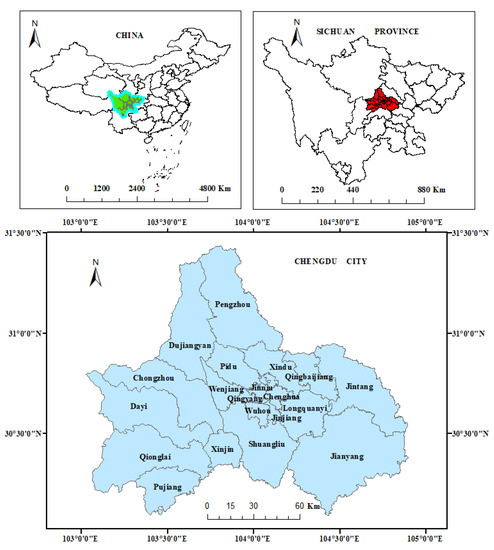 In this research, the study area chosen was the city of Chengdu (see Figure 1). Chengdu is located in southwestern China; its geographic coordinates are – north latitude and – east longitude.