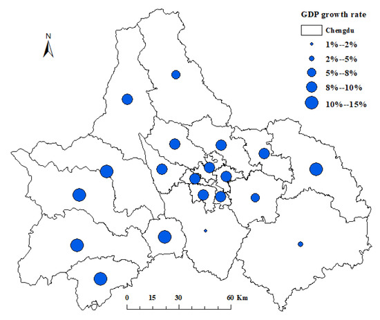 In terms of [43], uneven development is not only reflected by urban built-up areas, but also represented in other fields, such as investment and urban population. Therefore, this research tries to visualize the changing pattern of GDP and urban population, and compares it with the evolution pattern of urban built-up areas. The evaluation results illustrate the same evolution pattern between built-up areas, the GDP, and the urban population. This can also prove the uneven development in Chengdu during these five years. Furthermore, how to design a scientific spatial-temporal monitoring system with multiple parameters of uneven development is vital for future studies.