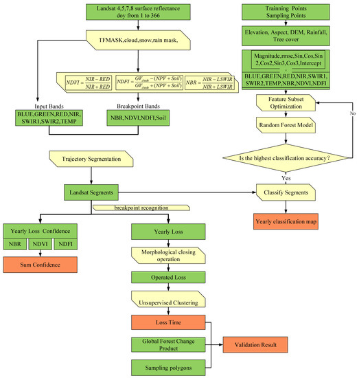 APA StyleZhang, Y., Wang, L., Zhou, Q., Tang, F., Zhang, B., Huang, N., & Nath, B. (2022). Continuous Change Detection and Classification—Spectral Trajectory Breakpoint Recognition for Forest Monitoring. Land, 11(4), 504. https://doi.org/10.3390/land11040504