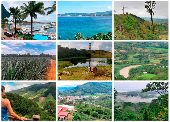 Costa Rica has a unique place in Latin American nature conservation history, spearheading active concern and long-term commitment [14]. Costa Rica has been a promoter of many types of protected areas, including pioneering inroads in the selection, delineation, management, and application of early landscape-scale conservation initiatives and biological corridors [15,16]. The importance of the landscape-scale approach has been actively discussed since the mid-1980s [17], and many broad-scale studies were initiated on biodiversity conservation applications, including efforts for Payment for Environmental Services (PES) schemes [16] and ecosystem services [18]. Conservation science research has provided prescriptions for landscape-scale biodiversity management [19], including guidance in so-called working landscapes [18,20,21,22]. However, efforts for characterization and assessment of all landscapes, beyond the focus on biodiversity or protected areas, are few and recent, e.g., [23,24,25,26]. The issues of scenic landscape resources and holistic landscape quality assessment are still not well developed [12].