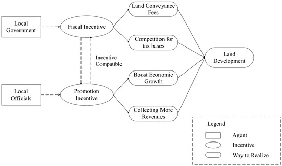 To disentangle how decentralization leads to land becoming a financial resource and growth engine, we first need to figure out the incentives rooted in local administrative levels. We summarize three critical motivations accounting for the enthusiasm of local governments on land development since the late 1990s. Distinct from most studies treating local government as a whole, we separate officials (as individuals) from government (as an organization), as shown in Figure 1. By performing this, we explore their respective incentives and find that these incentives are compatible.