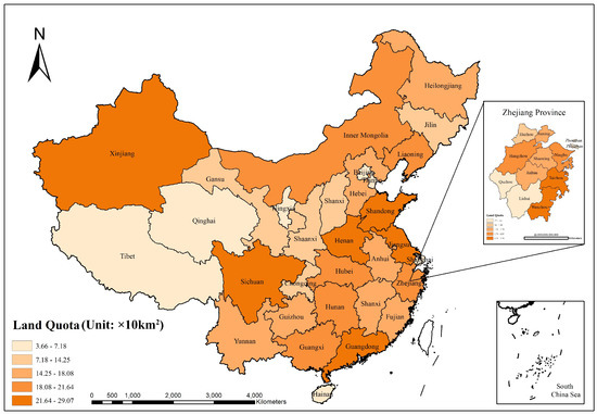 Spatial distribution of land quota in China and Zhejiang province 2006–2020.