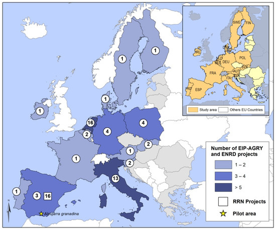 AFNs are widely regarded as useful solutions that comply with the objectives of agricultural biodiversity and sustainable development. With this in mind, various research studies, such as those by Kumar et al. [40], Michel et al. [41], Prima et al. [42], Medeiros et al. [43] or Goodman [44], have provided valuable information about innovations in the agri-food system and AFNs by reviewing the scientific literature referenced in databases such as Web Of Science and SCOPUS. In our case, we analyzed the innovative projects in this field contained in specialized websites or platforms for the exchange of information, where users can share the ideas and practices implemented within the framework of innovative projects promoted by actors from rural areas.
