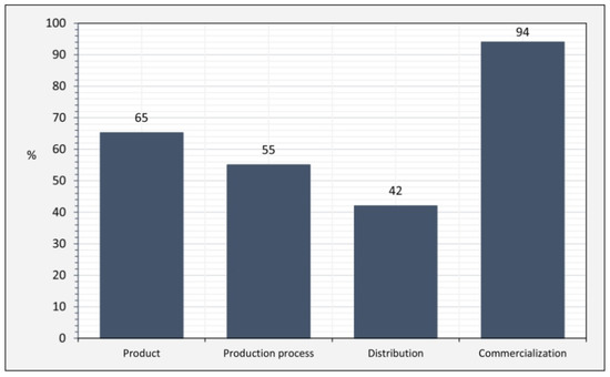The projects we analyzed introduced innovations in two main aspects of their business models, namely the creation of innovative sales and marketing models (94%) and the creation of differentiated products (65%) that could compete in conventional markets (Figure 5). We also identified a large number of projects that innovated in their production process (55%), most of which also introduced innovations in the product itself. Finally, innovative distribution methods based on improving short sales channels were used in 42% of the projects.