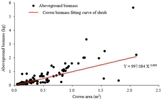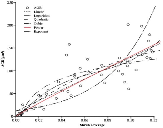 3.3. The Relationship between Vegetation Coverage and AGB of Gobi Desert Shrubs in Sample Plots