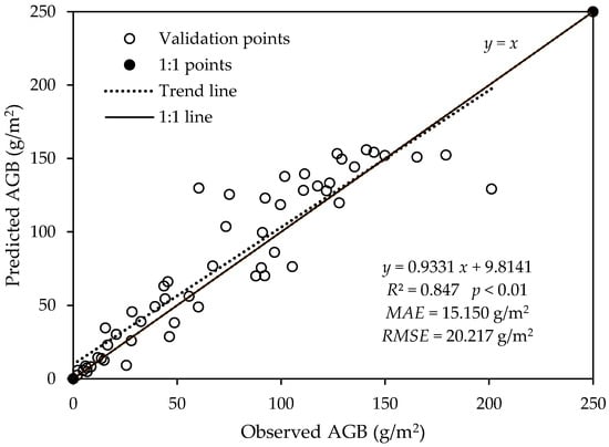 3.4. The AGB Results of Gobi Desert Shrubs Using UAV RGB Images Based on Power Model