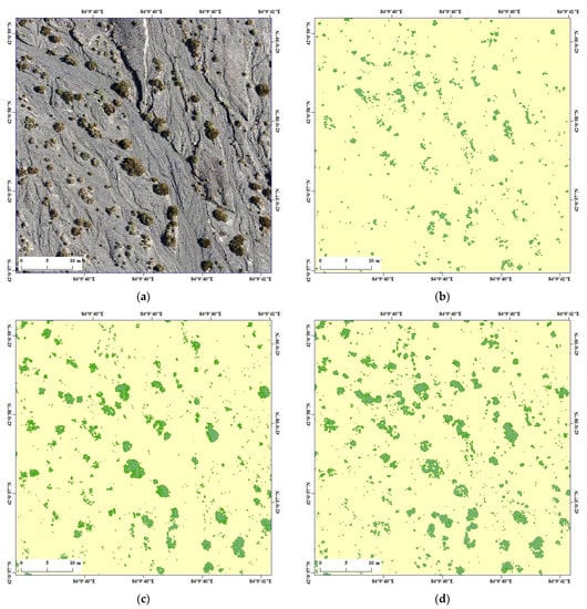 - Riihimäki, H.; Luoto, M.; Heiskanen, J. Estimating fractional cover of tundra vegetation at multiple scales using unmanned aerial systems and optical satellite data. Remote Sens. Environ. 2019, 224, 119–132. [Google Scholar] [CrossRef]