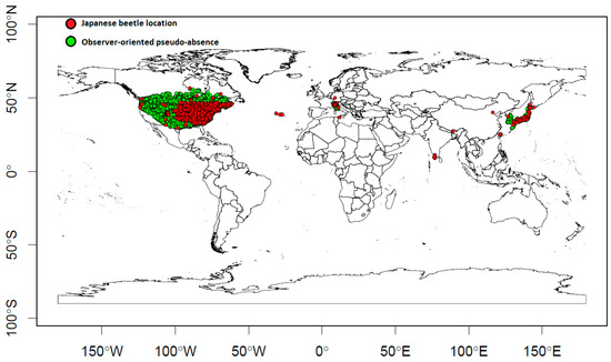 - Zhu, G.; Li, H.; Zhao, L. Incorporating anthropogenic variables into ecological niche modeling to predict areas of invasion of Popillia japonica. J. Pest Sci. 2017, 90, 151–160. [Google Scholar] [CrossRef]