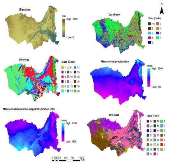 | ELE | Elevation | Continuous | 90 m | m | 0–2500 | SRTM void filled data [57,58] |