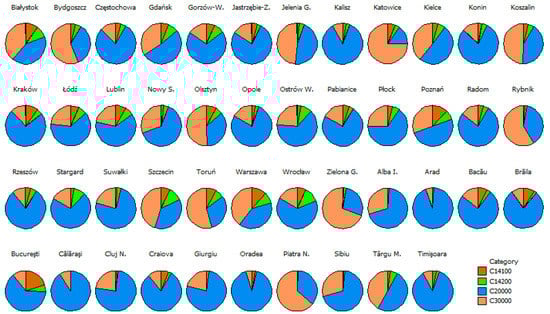 - The methodology needs more fine tuning to improve statistical significance. This is, however, easier said than done. To illustrate this point, please consider the following data-related issue: the frequency of land cover and land use data are low. Hence, while the Urban Atlas demonstrated its suitability for performing comparative analyses of changes, its temporal span does not allow for highlighting the intrinsic mechanisms of these changes.
