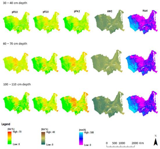 - Montzka, C.; Herbst, M.; Weihermüller, L.; Verhoef, A.; Vereecken, H. A Global Data Set of Soil Hydraulic Properties and Sub-Grid Variability of Soil Water Retention and Hydraulic Conductivity Curves. Earth Syst. Sci. Data 2017, 9, 529–543. [Google Scholar] [CrossRef]