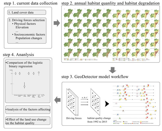 38. Liao, Y.; Wang, X.Y.; Zhou, J.M. Suitability assessment and validation of giant panda habitat based on GeoDetector. J. Geoifor. Sci. 2016, 18, 767–778. [Google Scholar]