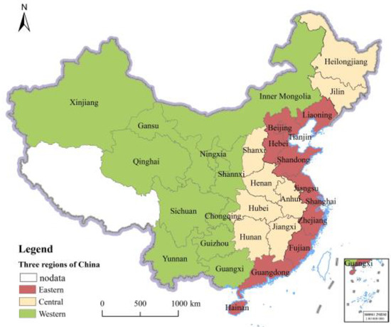 Figure 1. Spatial distribution map of the three regions in China.