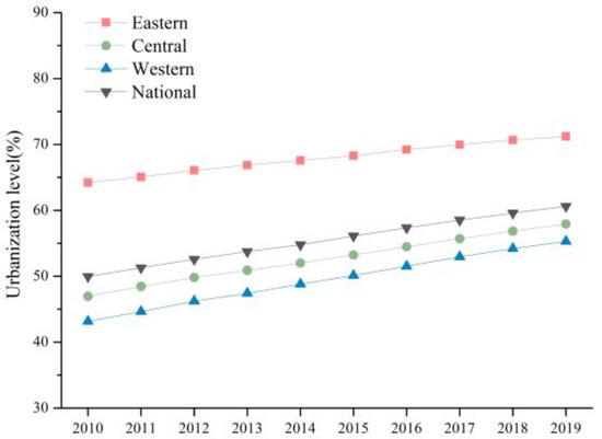 Figure 7. Changes in urbanization in China during 2010–2019.