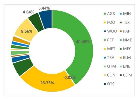 Since the above model contains information by sector, it can easily be obtained that the agricultural land transfer situation of each sector at the national level. Then the proportion of each sector could be obtained by dividing the data of each sector by the national gross agricultural land footprint.