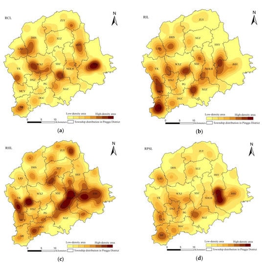- Jiang, G.H.; He, X.; Ma, W.Q.; Wang, M.Z.; Zhang, R.J. Rural settlements spatial pattern evolution and zoning district based on spatial autocorrelation. Trans. Chin. Soc. Agric. Eng. 2015, 31, 265–273. [Google Scholar]