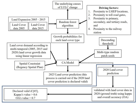 - Yulianto, F.; Maulana, T.; Khomarudin, M.R. Analysis of the Dynamics of Land Use Change and Its Prediction Based on the Integration of Remotely Sensed Data and CA-Markov Model, in the Upstream Citarum Watershed, West Java, Indonesia. Int. J. Digit. Earth 2019, 12, 1151–1176. [Google Scholar] [CrossRef]