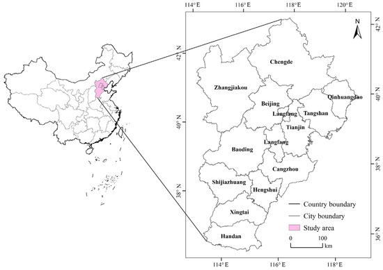Figure 1. The location of the Beijing–Tianjin–Hebei urban agglomeration in China.