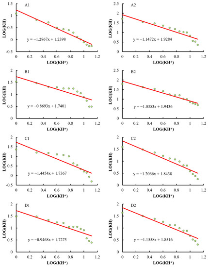 Network hierarchy represents the hierarchical span between high-level cities and low-level cities in the network. High-level networks usually have prominent core cities that enhance the cohesion and competitiveness of the network. However, the development gap between core and low-level cities is significant, and low-level cities have a strong dependence on core cities. The network, therefore, presents a degree of fragility. In this study, weighted degree and weighted degree distribution are used to measure the hierarchy of networks. According to the weighted degree value of each node, the nodes are sorted from large to small to draw a power law curve; the absolute value of its slope is the weighted degree distribution coefficient of the network. The larger the distribution coefficient of the weighted degree, the more significant the hierarchy. The power law curve distribution of the weighted degree distribution is represented by the following formula:
