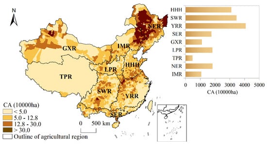 - Yuan, C.; Zhang, D.; Liu, L.; Ye, J. Regional characteristics and spatial-temporal distribution of cultivated land change in China during 2009–2018. Trans. Chin. Soc. Agric. Eng. (Trans. CSAE) 2021, 37, 267–278. (In Chinese) [Google Scholar]